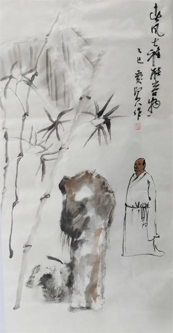 他师承陈玉圃、魏启后等名家,深造于荣宝斋画院名家人物画工作室,以简练率真、文气充盈的笔墨立足传统,兼擅人物、山水、花鸟与书法,作品格调清雅、意境深远,兼具人文温度与时代精神,形成“以书入画、以文载道”的鲜明面貌。其创作坚守“艺术为人民”的初心,将儒家文化、家国情怀与生活感悟熔于笔端,做到雅俗共赏、意蕴悠长。