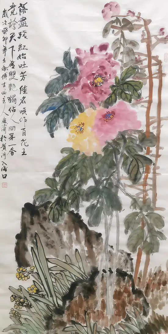 对于而言王庆涛老师,《独占人间第一香》的成功拍卖,是其艺术创作生涯的一个重要节点。这幅创作于2023年,凝聚了他多年来对水墨语言的探索与实践。他的作品始终扎根于中国传统美学,却又不囿于古法,在色彩运用、构图形式上大胆创新,试图用当代的艺术语言诠释自然之美与生命之力。《独占人间第一香》中,看似随意的色彩泼洒与线条勾勒,它不仅是自然景物的描摹,更是对生命蓬勃生命力的歌颂,这种跨越文化的精神内核,正是其能打动海外藏家的关键。