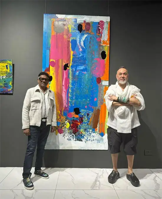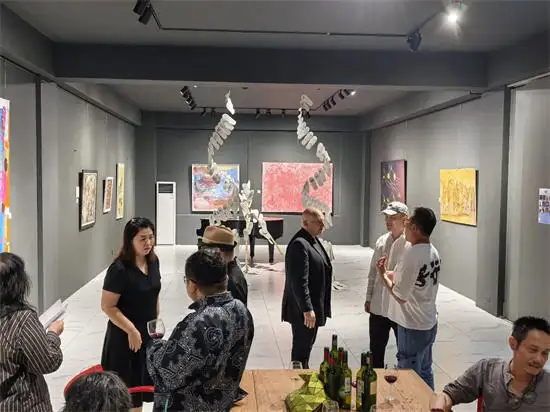 “艺术是超越语言的沟通方式。”展览现场二十余件绘画、装置作品错落分布于极简风格的展厅中。开幕酒会上,本地藏家、艺术从业者与国际艺术家热烈交流,现场氛围轻松而专业,不少观众表示“在抽象作品中看到了不同文化的精神共鸣”。