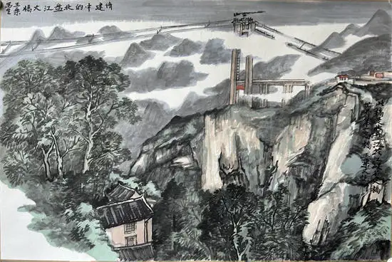 修建中的花江峡谷大桥,纸本,2024年,65x45cm