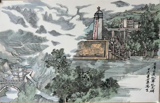 白层古渡红军纪念碑,纸本,2024年,65x45cm
